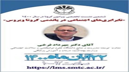 ششمین نشست تخصصی پیرامون کرونا در سال 1400، تحت عنوان « نابرابری های اجتماعی در پاندمی کروناویروس »، فردا شنبه (22 آبان ماه جاری) توسط دکتر مهرداد فرخی عضو هیات علمی و معاون توسعه دانشگاه علوم توانبخشی و سلامت اجتماعی و مسئول دبیرخانه رصدخانه اجتماعی کووید 19، برگزار می شود.